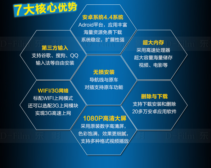 1.东影导航支持一键导航功能,方便驾驶中开启导航功能。 2.支持导航听音乐、收音、视频,可一键式来回切换。 3.主机带一键关屏功能,夜间安全行车更安全,标配车载蓝牙电话,提高驾驶注意力。 4.音乐、收音、DVD、导航带记忆播放,拔钥匙切断电源后再次启动均可记忆播放。 5.内置45W*4大功率扬声器输出,数码高低音处理技术,多种音效模式可选。 6.支持SD最大扩充32G,U盘最大支持16G。 7.导航均为专车专用,与原车电源线和收音机天线直接对插,不用破坏原车路线。 8.支持原车方向盘控制按键,音量加减、上下选择一个也不会少,主机菜单中自带方向盘学习选择,设置非常简单。 9.开机LOGO风格,可以自定义DIY。 10.支持高清数字电视、胎压监测、行车记录仪、GPS定位仪等相 关扩展功能(选配)。 |