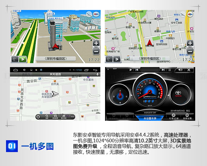 | 分辨率: | 1024*600像素,内置LED光源显像 | 导航内存: | 高速处理器 | |||||||||