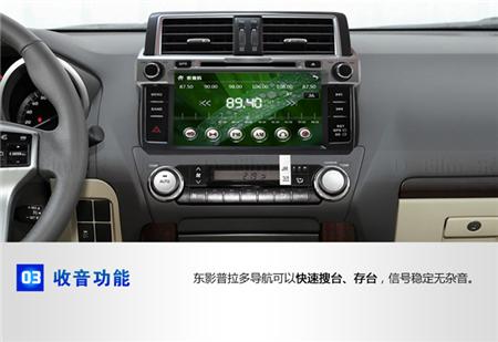 东影又出一招--2014款普拉多专用导航仪,同比领先上市,采用最新9寸高清显示屏,拉丝面框独出心栽,独到核心解码技术,不破线,不改变原车线路,支持原装空调和方向盘控制。