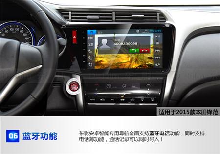 东影本田2015款锋专用导航采用安卓4.4.2系统,高度处理器,一机多图,配置安全预警系统,独家电容屏,支持WIFI、手机、3G等多种上网方式,海量资源免费下载,支持1080P HD全格式视频播放。