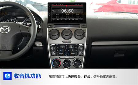 东影2014款马自达6专用导航航采用安卓4.4.2系统,四核高速处理器,一机多图,配置安全预警系统,独家电容屏,支持WIFI、手机、3G等多种上网方式,海量资源免费下载,支持1080P HD全格式视频播放。