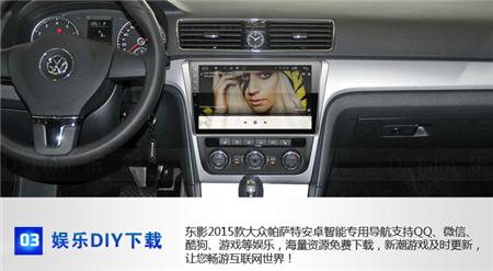 东影大众2015款帕萨特专用导航采用安卓4.4.2系统,四核高速处理器,一机多图,配置安全预警系统,独家电容屏,支持WIFI、手机、3G等多种上网方式,海量资源免费下载,支持1080P HD全格式视频播放。