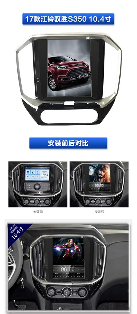 东影江铃域虎/驭胜S350专用导航采用安卓6.0系统,四核高速处理器,一机多图,配置安全预警系统,独家电容屏,支持WIFI、手机、4G等多种上网方式,海量资源免费下载,支持1080P HD全格式视频播放